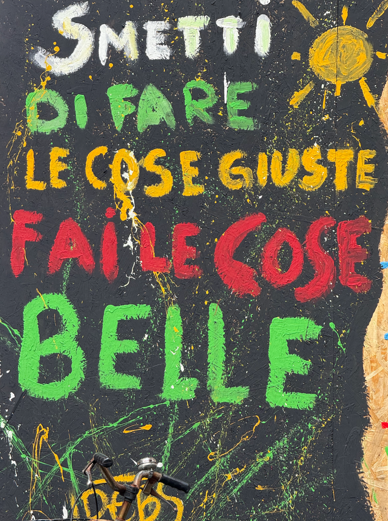 ““Un amico mio, l’altro giorno, mi fa: “Oh, ma sai che ho prenotato le vacanze di Capodanno?” “Ma come Capodanno?” gli faccio io. “Ma te sei matto?!” Ma come fanno ‘ste persone a programmare sempre tutto? Quando lo fanno? Come ci riescono? Io non so neanche cosa mangerò a cena, vado al supermercato tutti i giorni perché son indeciso… E poi loro, invece, sanno esattamente cosa vogliono fare tra un anno! Dicono: “Eh, ma risparmio.” Ma non soldi, no… loro risparmiano energie. Pensano di poter controllare tutto, di indirizzare i loro umori futuri, di poter decidere come si sentiranno, senza lasciare le cose al caso. Che proprio gliela vorresti dire la tua, ma non lo fai, perché tanto non lo capirebbero. Così li guardi, sorridi… e pensi a cosa mangiare stasera. Fabbri, non lasciarti tentare dalla voglia di sapere, ma accetta lo scoramento della volontà di scoprire.”
