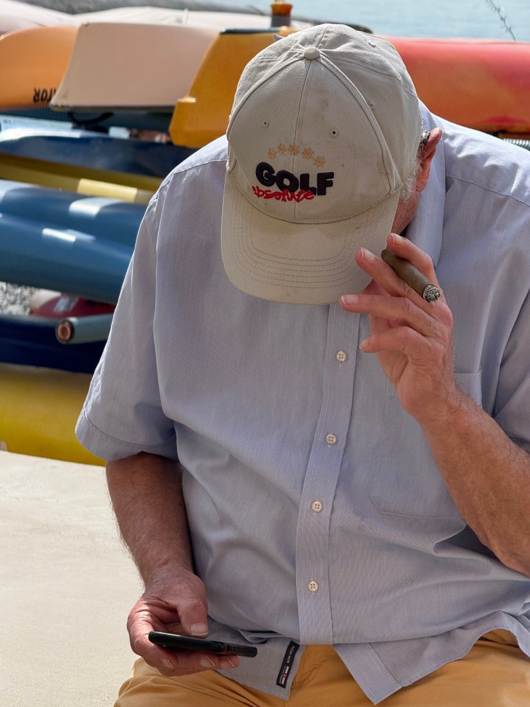 L’uomo, guardandola e con tono ironico: “Eeeeeh, cafone… mamma miaaaa! Semmai… scorbutico! È che voi avete rinnegato la storia, siete figli e figliastri di questo perbenismo comico a cui manco credete. Quindi sentite a me: mo’ state al parco con questa bellissima bambina bionda — mamma mia quant’è bella — a cui, appena tornate a casa, darete nu tablet per non farle avanzare richieste… Perciò prendetevi ’sto sole in santa pace… con un aroma di Camel.”